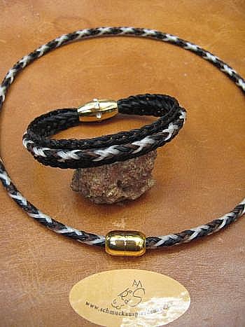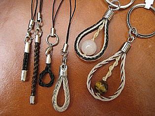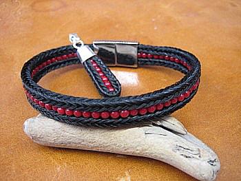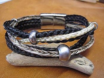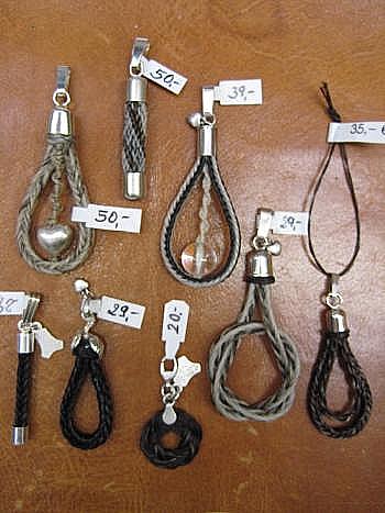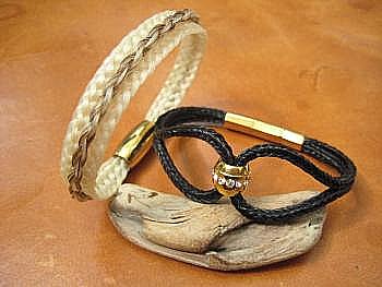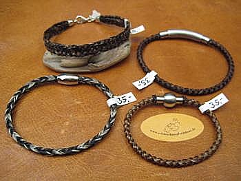 aus Schweifhaar mit Sterling-Silber, bzw. roter Koralle: obere Reihe v.l.n.r. 3
