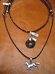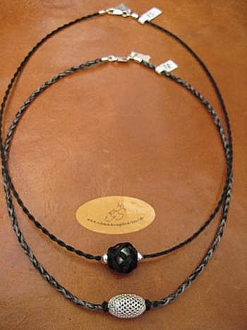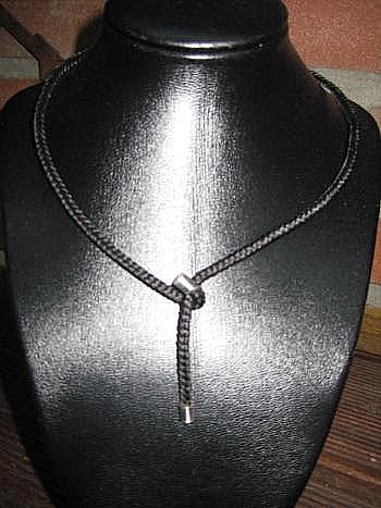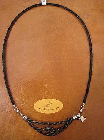 Halsschmuck „String“-geflochten variabel/stufenlos verstellbar mit Sterling-Silber-Abschlüsse: max. Weite ca. 58cm = 61,-€; Anhänger "Blüte/Sonne" mit Aufhängung + Charmkarabiner (kompl. Sterling-Silber) = 20,- € / max. Weite ca. 70cm incl. fein ausgearbeitetem Sterling-Silber-Pferdchenanhänger = 77,- €