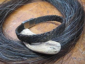 H1 Armband, äußerst filigran im Spiralmuster gehitcht (schwarz/dkl.fuchs), b=ca. 1cm, Lg. ca. 19,5 cm, mit Edelstahl-Schiebemagnetverschluß. Preis: 135,- €